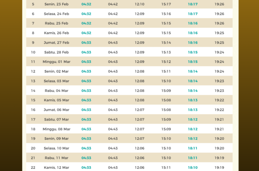 Jadwal Salat, Imsak dan Buka Puasa Ramadan 2026/1447 H WIB BMEDIA NUSANTARA – Ramadhan selalu menjadi momen yang dinanti umat Islam. Bagi warga Daerah Jakarta dan sekitarnya, memiliki jadwal imsakiyah Ramadhan 2026 yang resmi dan akurat adalah...